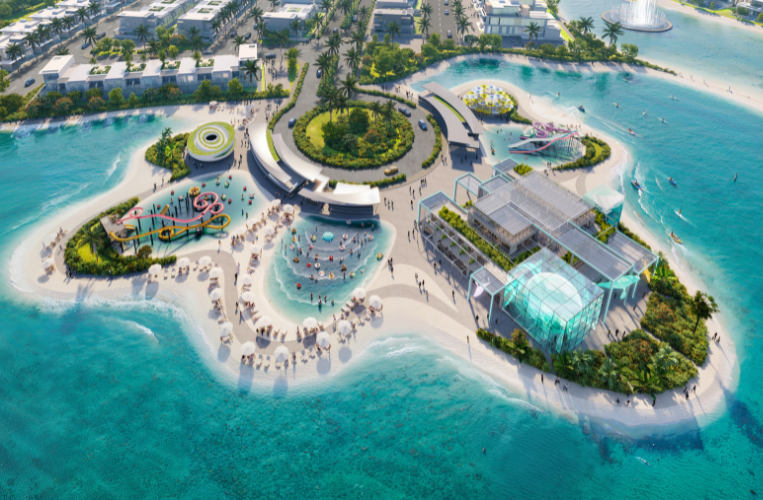 An extension of the central waterpark, seamlessly integrating and extending across the waterfront areas of the Central Hub.